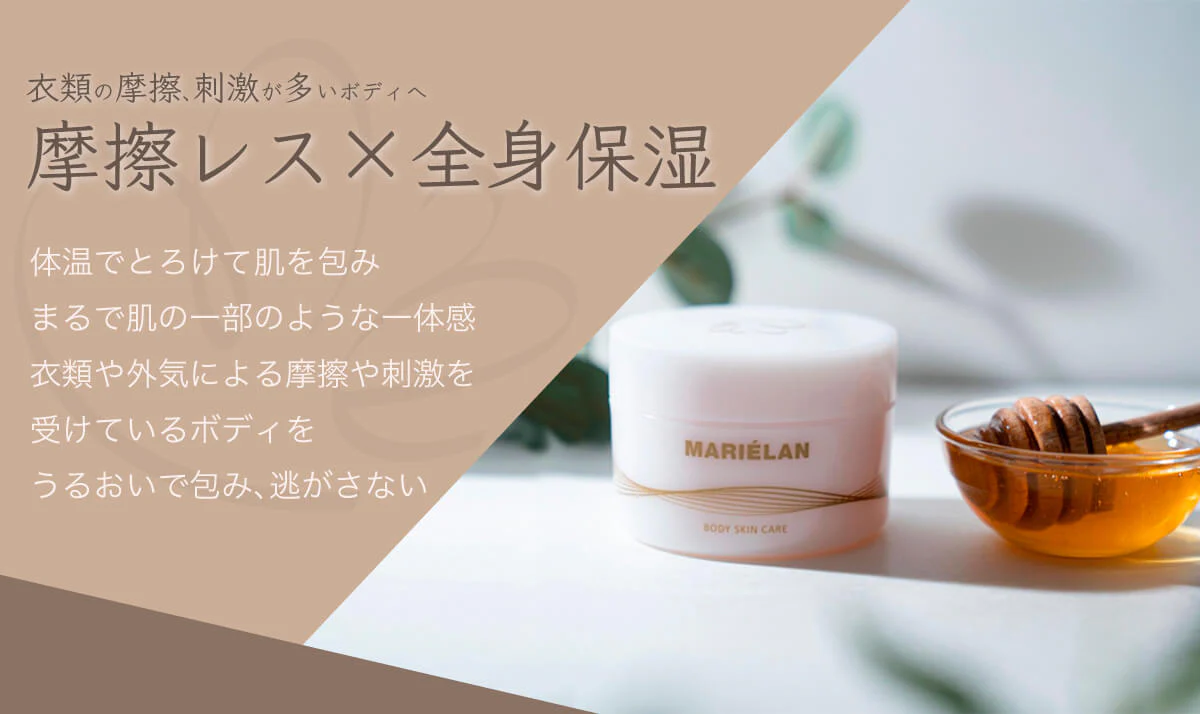 乾燥や衣類による摩擦など、そのままにしておくと肌荒れがおこります。MARIÉLANは肌荒れを起こしやすい方におすすめの成分をふんだんに配合しています。